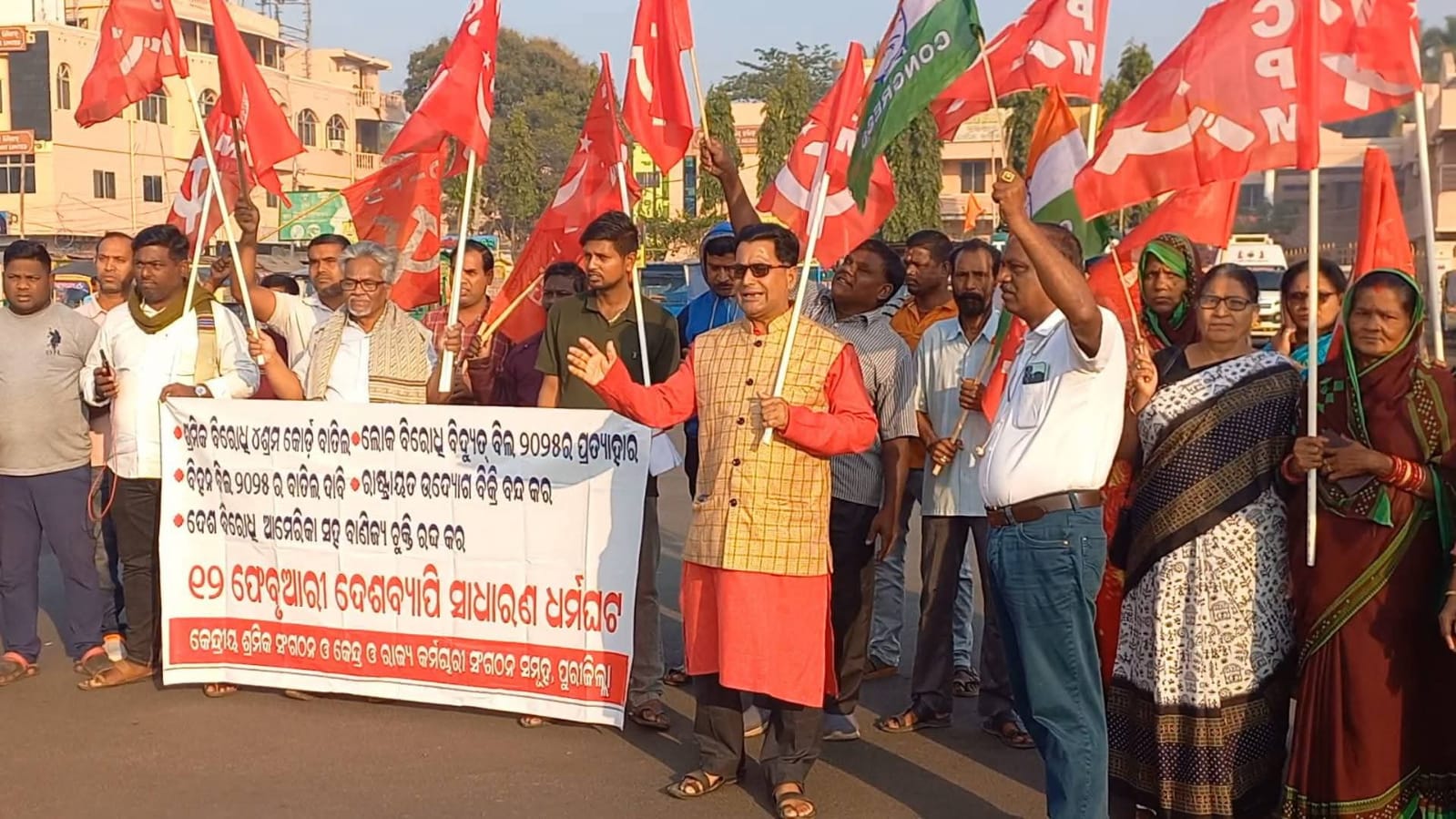 କଂଗ୍ରେସ ମଧ୍ୟ ଏହି ଧର୍ମଘଟକୁ ସମର୍ଥନ କରିଥିବାରୁ ପୁରୀ ଜିଲ୍ଲା କଂଗ୍ରେସ ସଭାପତି ଇଂ ରାଜେଶ କୁମାର ମିଶ୍ରଙ୍କ ପକ୍ଷରୁ ଜିଲ୍ଲାସ୍ତରୀୟ ଧର୍ମଘଟ ଜୋରଦାର କରିଥିଲା । ସିଟୁର ସମ୍ପାଦକ ଶରତ କୁମାର ରାୟଗୁରୁ, ଏଆଇଟିୟୁସିର ସମ୍ପାଦକ ବ୍ରଜବନ୍ଧୁ ପ୍ରଧାନ, ସିପିଆଇ ଜିଲ୍ଲା ସମ୍ପାଦକ ପ୍ରଦୀପ ମହାନ୍ତି, ସିପିଏମର ସମ୍ପାଦକ ଜଗନ୍ନାଥ ଦେଓ,ସୁରେନ୍ଦ୍ର ନାଥ ଜେନା, ଟୁନା ନାୟକଙ୍କ ସମେତ ମହିଳା ଓ ପୁରୁଷ ନେତୃତ୍ୱ ମଣ୍ଡଳୀର କର୍ମୀ ମାନେ ବିଭିନ୍ନ ନାରାଦେବା ସହ ଶ୍ରମିକ ସ୍ୱାର୍ଥ ବିରୋଧୀ, ୪ଟି ଶ୍ରମ କୋଡ ରଦ୍ଦ, ଭିବି ଜୀ ରାମ-ଜୀ ଆଇନ ରଦ୍ଦ, ଶ୍ରମିକଙ୍କୁ ମାସିକ ସର୍ବନିମ୍ନ ମଜୁରି ୨୬ ହଜାର ଟଙ୍କା ପ୍ରଦାନ ସହିତ ଅଙ୍ଗନବାଡି, ଆଶା, ପାଚିକା, ଉଦ୍ଯାନ ସାଥୀ, ଗ୍ରାମପଞ୍ଚାୟତ କର୍ମଚାରୀ,ଜୀବିକା ମିଶନ ପ୍ରମୁଖ ଯୋଜନା ଭିତ୍ତିକ ଶ୍ରମିକଙ୍କୁ ଶ୍ରମିକ ମାନ୍ୟତା, ବିଦ୍ୟୁତ ସଂଶୋଧନ ବିଲ ୨୦୨୫ ଓ ଘରୋଇ ସେକ୍ଟର ଆଣବିକ ଶକ୍ତି ଭିତ୍ତିକ ବିଲ ୨୦୨୫ ରଦ୍ଦ କରିବା ଦାବି କରି ସହର ବସଷ୍ଟାଣ୍ଡ, ରେଳଷ୍ଟେସନ, ମେଡିକାଲ ଛକ, ବଡଦାଣ୍ଡ, କଚେରୀ ଛକରେ ଶତାଧିକ କର୍ମୀ ଓ ସମର୍ଥକମାନେ ପିକେଟିଂ କରିବା ସହ ବିକ୍ଷୋଭ ପ୍ରଦର୍ଶନ କରିଥିଲେ ।