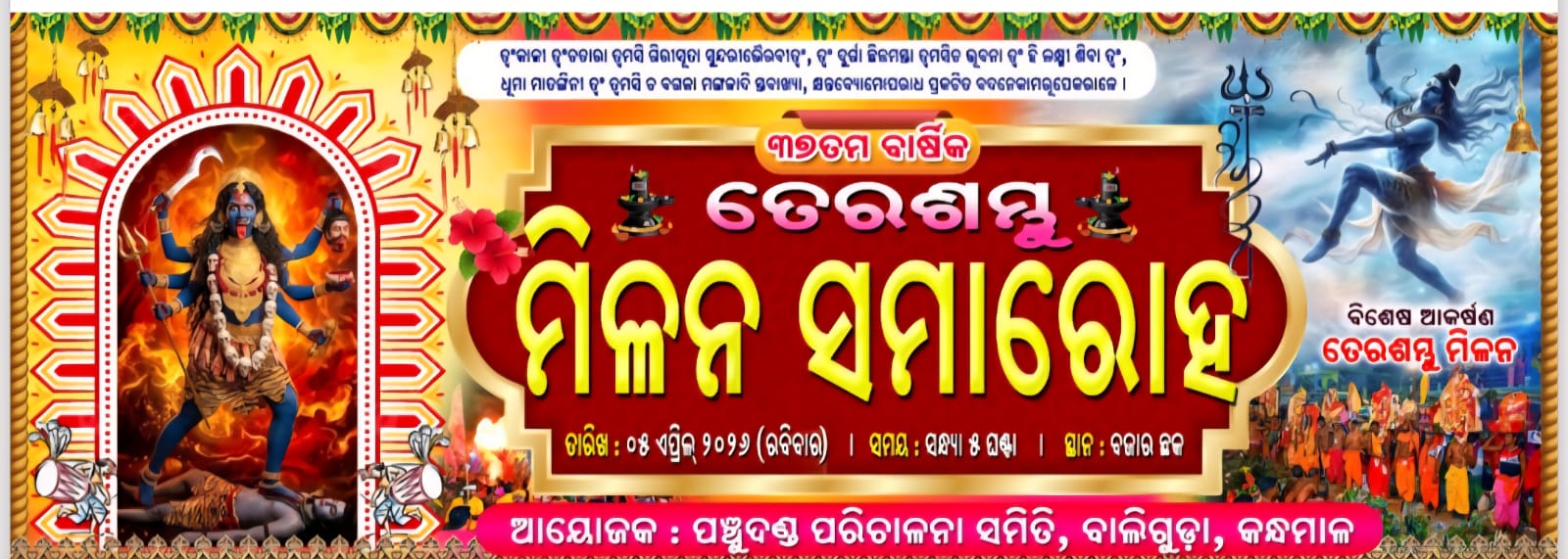 ବାଲିଗୁଡା: ଆଉ ଦିନକ ପରେ ଆସୁଛି, ୧୩ ଦିନିଆ ଦଣ୍ଡଯାତ୍ରା, ଏହି ପରିପ୍ରେକ୍ଷୀରେ ଚଳିତ ମାସ ୧ ତାରିଖ ଠାରୁ ୧୪ ତାରିଖ ପର୍ଯ୍ୟନ୍ତ ମା’କାଳୀଙ୍କ ଦଣ୍ଡଯାତ୍ରା ଅନୁଷ୍ଠିତ ହେଉଅଛି । ପ୍ରତିବର୍ଷ ଭଳି ଚଳିତ ବର୍ଷ ମଧ୍ୟ ବାଲିଗୁଡ଼ା ସହରରେ ସ୍ଥାନୀୟ ପଞ୍ଚୁଦଣ୍ଡ ପରିଚାଳନା ସମିତି ଆନୁକୂଲ୍ୟରେ ୩୭ ତମ ବାର୍ଷିକ ତେର ଶମ୍ଭୁ ମିଳନ ସମାରୋହ ଏପ୍ରିଲ ୫ ତାରିଖ ରବିବାର ଦିନ ଅନୁଷ୍ଠିତ ହେବ । ଏ ନେଇ ସମସ୍ତ କାର୍ଯ୍ୟ ଶେଷ ପର୍ଯ୍ୟାୟ ରେ ପହଞ୍ଚିସାରିଛି । ଏପ୍ରିଲ ୧ ତାରିଖ ଠାରୁ ୧୪ ତାରିଖ ପର୍ଯ୍ୟନ୍ତ ସହରରେ ଅଣ୍ଡା, ମାଛ, ମାଂସ, ଶୁଖୁଆ ପ୍ରଭୃତି ଆମିଷ ଦ୍ରବ୍ୟ ବିକ୍ରି ଓ ସେବନ ବନ୍ଦ କରି ଆମକୁ ସହଯୋଗ କରିବା ସହିତ ମା’ କାଳୀଙ୍କ ଆଶୀର୍ବାଦ ଲାଭ କରିବା ପାଇଁ ସମିତି ତରଫରୁ ଅନୁରୋଧ କରାଯାଇଛି । ତେର ଦଣ୍ଡ ମିଳନର କାର୍ଯ୍ୟସୂଚୀ ପ୍ରକାରେ ୫ ତାରିଖ ରବିବାର ସକାଳ ୮ଘଣ୍ଟା ସମୟରେ ମା’ ପାଟ୍ଟଖଣ୍ଡା ମନ୍ଦିରରେ ୧୩ ଦଣ୍ଡ ଥଳର ବରଣ କରାଯିବ କ୍ଷ ଦିବା ଘ.୧୧.୩୦ମି.ସମୟରେ ମେଇନ୍।ରୋଡ଼ ରେ ଧୂଳିଦଣ୍ଡ ଅନୁଷ୍ଠିତ ହେବ। ଅପରାହ୍ନ ଘ.୦୪.୩୦ ମି.ସମୟରେ ବନ୍ଧପାଖରେ ପାଣିଦଣ୍ଡ ର ଆୟୋଜନ କରାଯିବ ।ସନ୍ଧ୍ୟା ୦୫ ଘଟିକା ସମୟରେ ଟାଉନର ବଜାର ଛକ ନିକଟରେ ଅଞ୍ଚଳର ସବୁଠାରୁ ଆକର୍ଷଣୀୟ ୧୩ ଦଣ୍ଡର ମହାମିଳନ ଖୁବ ଯାକ ଜକମକରେ ଆୟୋଜନ କରାଯିବ। ରାତ୍ର ୮ ଘଣ୍ଟ ଠାରୁ ୧୨ ଘଣ୍ଟ ପର୍ଯ୍ୟନ୍ତ ବିଭିନ୍ନ ପ୍ରକାର ସାଂସ୍କୃତିକ କାର୍ଯ୍ୟକ୍ରମ ସହ ରାତ୍ର ୧୧ ଘଣ୍ଟ ସମୟରେ ଝୁଣାଦଣ୍ଡ ର ଏକ ବିରାଟ ପଟୁଆର ହେବା ସହ ୬ ତାରିଖ ସକାଳ ୦୮ଘଣ୍ଟ ସମୟରେ ଯାତ୍ରା ସମାପ୍ତ ହେବ ଏଣୁ ଏହି କାର୍ଯ୍ୟକ୍ରମ ରେ ବହୁ ସଂଖ୍ୟା ରେ ଯୋଗ ଦେବାପାଇଁ ସମିତି ତରଫରୁ ଅନୁରୋଧ କରାଯାଇଛି ।
